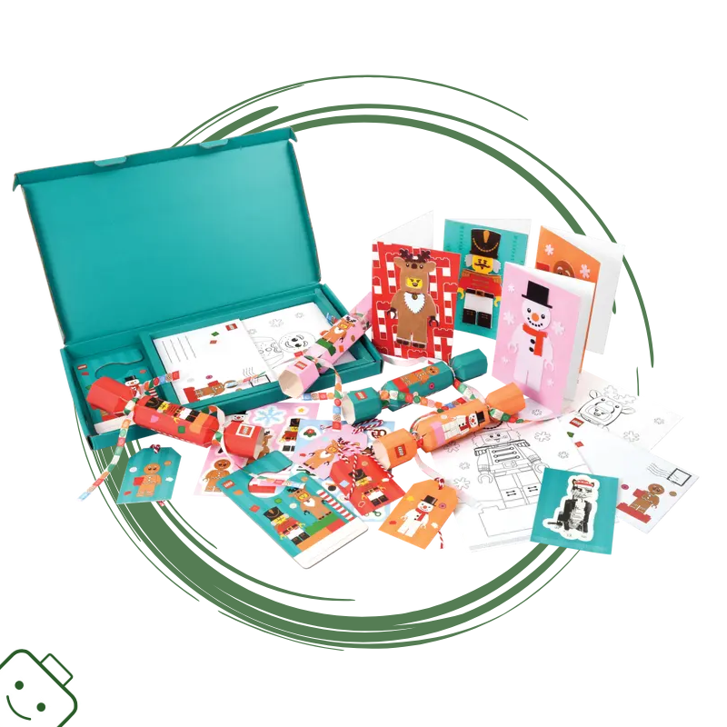 - Hodiny kreativní zábavy – Sada obsahuje 4 crackery, 4 plstěné samolepky minifigurek LEGO®, 4 pohlednice, 4 jmenovky na dárky, 4 obálky, 4 omalovánky, 2 visačky na dveře a 2 aršíky vánočních samolepek