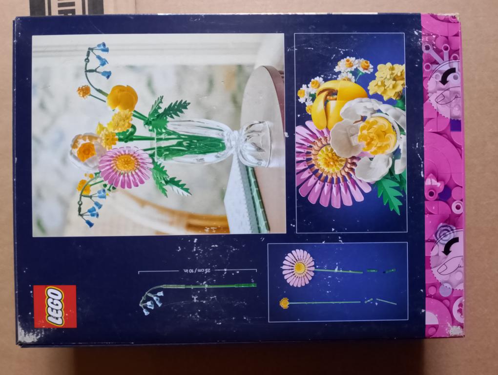 - Rozměry – Stavebnice s kyticí se skládá z 373 dílků a rozměry jednotlivých aranžmá se liší, ale jedná z verzí měří přes 22 cm na výšku, 8 cm na šířku 5 cm do hloubky