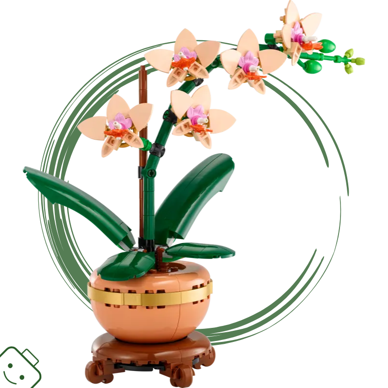 Tato věrná replika obsahuje 5 kvetoucích květů orchideje, několik poupat a listy. Součástí je také světlý terakotový květináč v na krásném podstavci s efektem dřeva. Začínající květináři si tuto krásnou květinu z kostek LEGO můžou vystavit doma nebo v kanceláři a dodat místu kousek klidné přírody.
