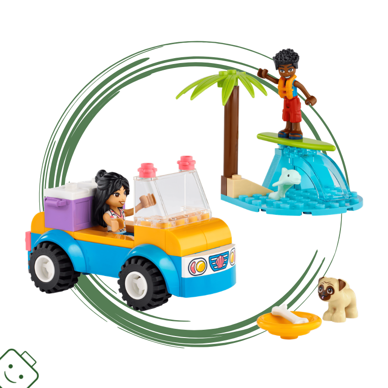Děti od 4 let, které si rády hrají na pláži, si zamilují vytváření příběhů se stavebnicí Zábava s plážovou buginou (41725) od LEGO® Friends. Tato stavebnice dětem pomůže naučit se stavět a také začít tvořit s Liann a Zacem. Liann je nadšená a plná energie a s přátelským Zacem tvoří skvělou dvojku. Mezi doplňky najdete plážovou buginu, vlnu, mopse a delfína.