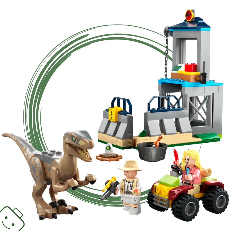 - Začátečnická sada – Představte dětem od 4 let vzrušující stavebnice od LEGO® Jurassic World se stavebnicí Útěk velociraptora (76957) s polohovatelnou figurkou velociraptora, rychle sestavitelným výběhem pro dinosaury a terénním vozem