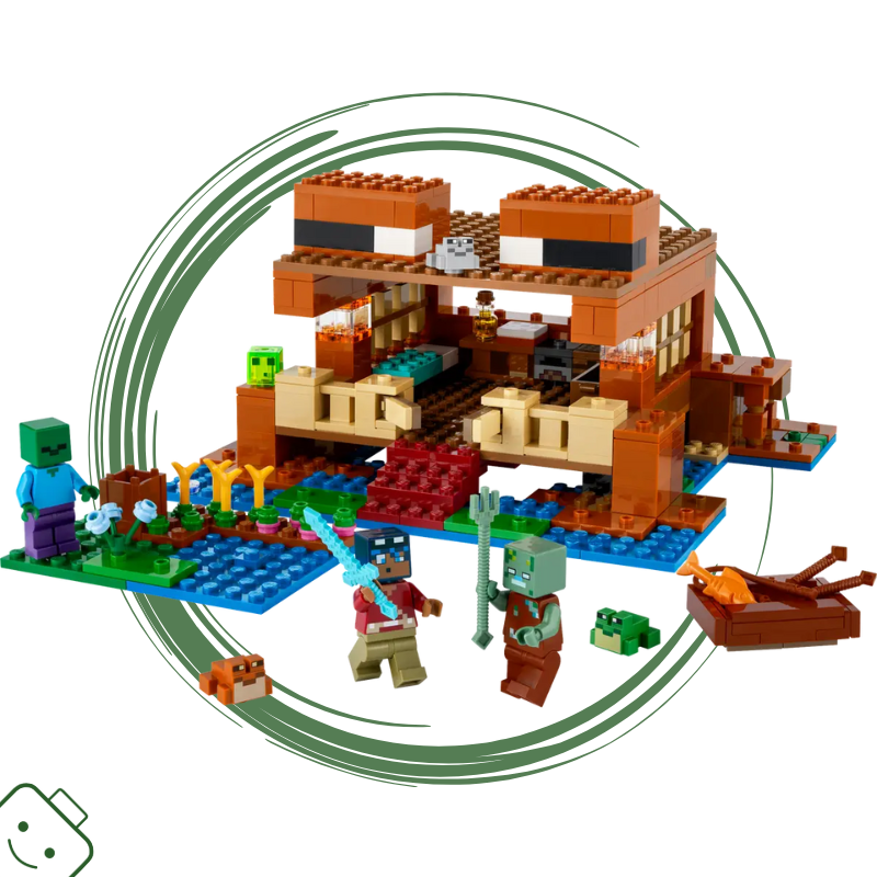 - Žabí domek pro děti a milovníky videoher – Tato stavebnice LEGO® Minecraft® má podobu žáby, je nabitá autentickými detaily, moby a figurkami a je vhodná pro děti od 8 let