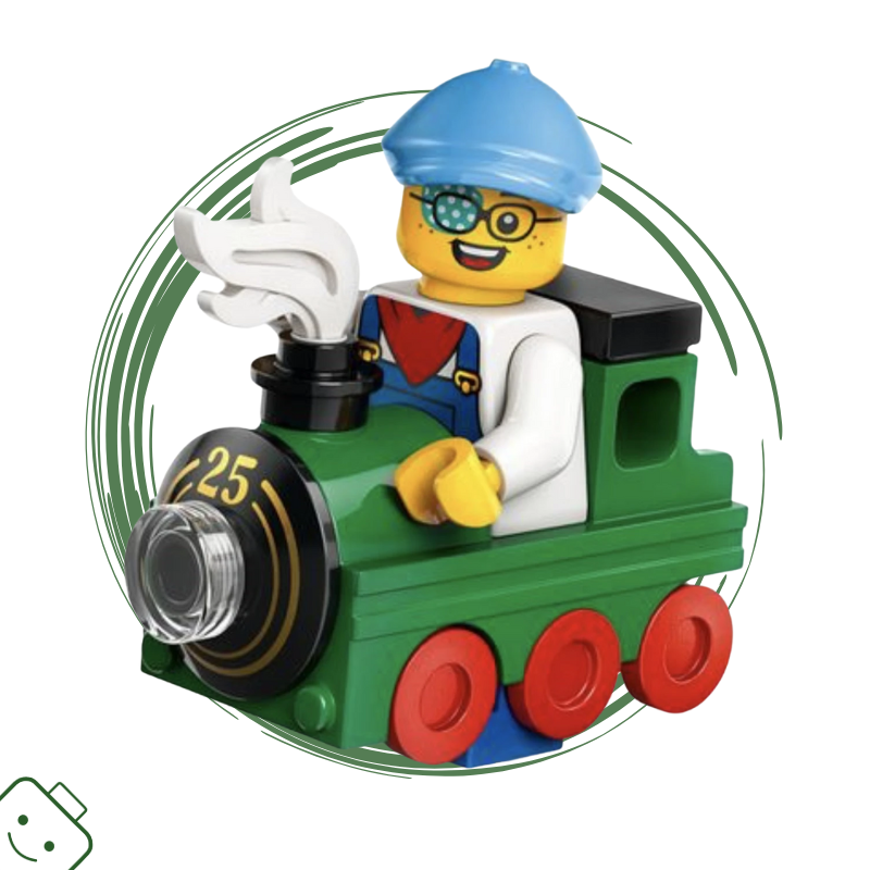 Je to postava, která okamžitě vyvolá úsměv – ať už ji postavíš vedle vláčkové dráhy, do sbírky nebo do výlohy. Kostým je detailně zpracovaný, s kolečky, komínem a vlakovým motivem, který potěší každého fanouška LEGO® i železnice.