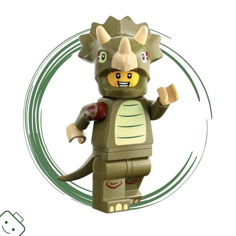 Připrav se na výlet do druhohor! LEGO® minifigurka Fanoušek triceratopsů v kostýmu ze 25. série (71045) je oslavou dětské fantazie a lásky k dinosaurům. V detailně propracovaném převleku triceratopse – s rohy, ocasem a texturovanou hlavou – působí tahle figurka jako živý maskot prehistorie.