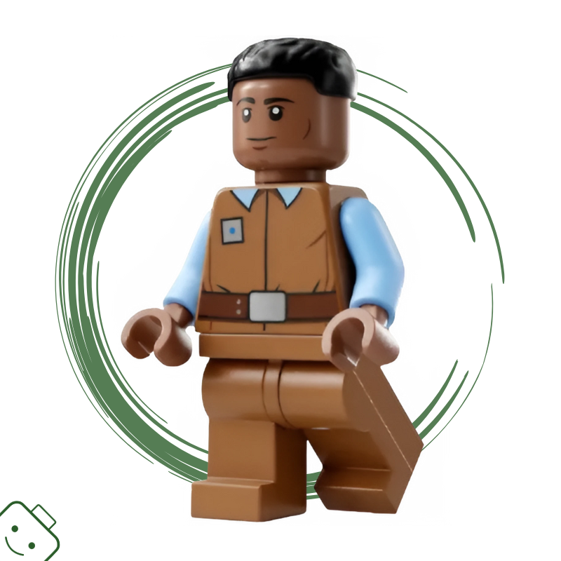 Minifigurka prvního důstojníka Hawkinse (sw1310) představuje důstojníka Nové Republiky ze seriálu Star Wars: Ahsoka. V této verzi má světle hnědou uniformu s modrým límcem, stříbrným odznakem a černé vlasy. Jeho výraz je neutrální, ale soustředěný – přesně jako jeho role na palubě Home One pod velením generálky Hery Syndully.