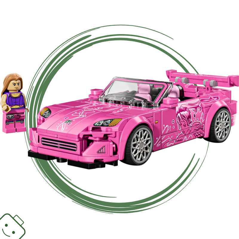 - 1 minifigurka – Stavebnice s růžovým závodnímautem obsahuje minifigurku Suki, kterou děti posadí za volant a připomenou si scény z kultovního filmu 2 Fast 2 Furious