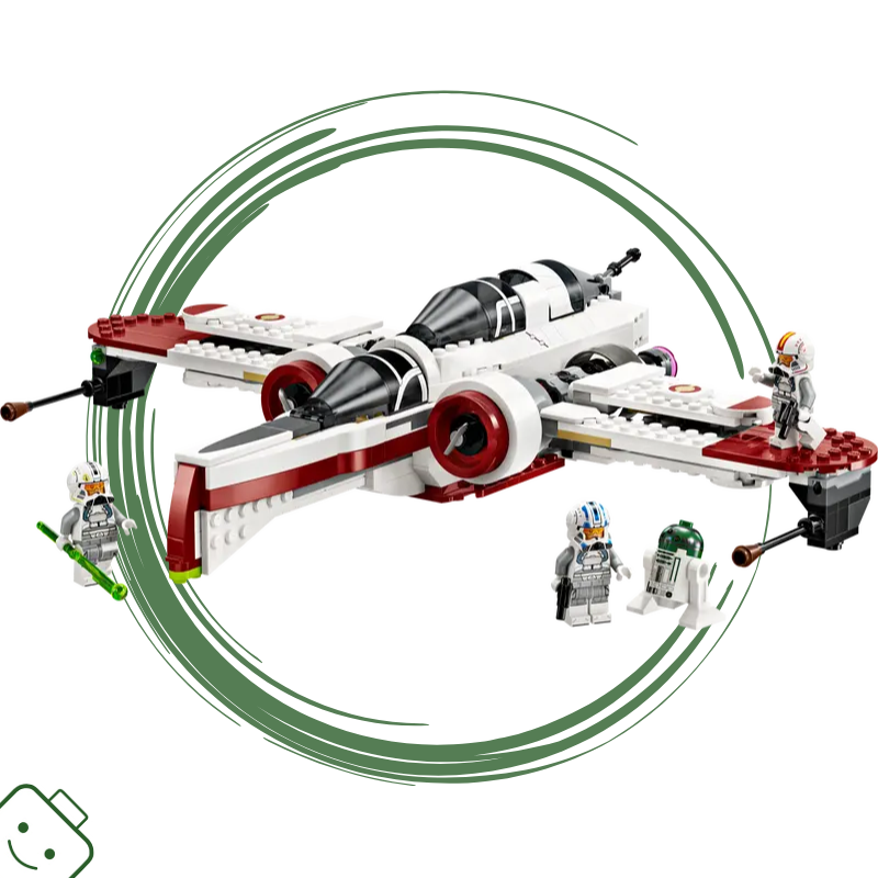 - Stíhačka z kostek LEGO® – Součástí jsou 3 otevírací kokpity, prostor pro R4-P44, 6 křídel, včetně 4 pákou ovládaných nastavitelných křídel pro útočný a cestovní režim, a 2 pružinové vystřelovače