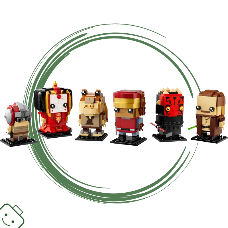 - Postavy z filmu Star Wars: Skrytá hrozba ve stylu LEGO® BrickHeadz™ – Připomeňte si tento velkolepý příběh se sestavitelnými výstavními figurkami z řady LEGO Star Wars™ BrickHeadz