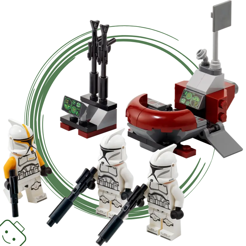 - Minimodely pro akční bitvy – Inspirujte dětskou představivost sadou 40558 Velitelská stanice klonovaných vojáků od LEGO® Star Wars™, která zaujme sklápěcími rampami a stojanem na zbraně se 2 blasterovými puškami