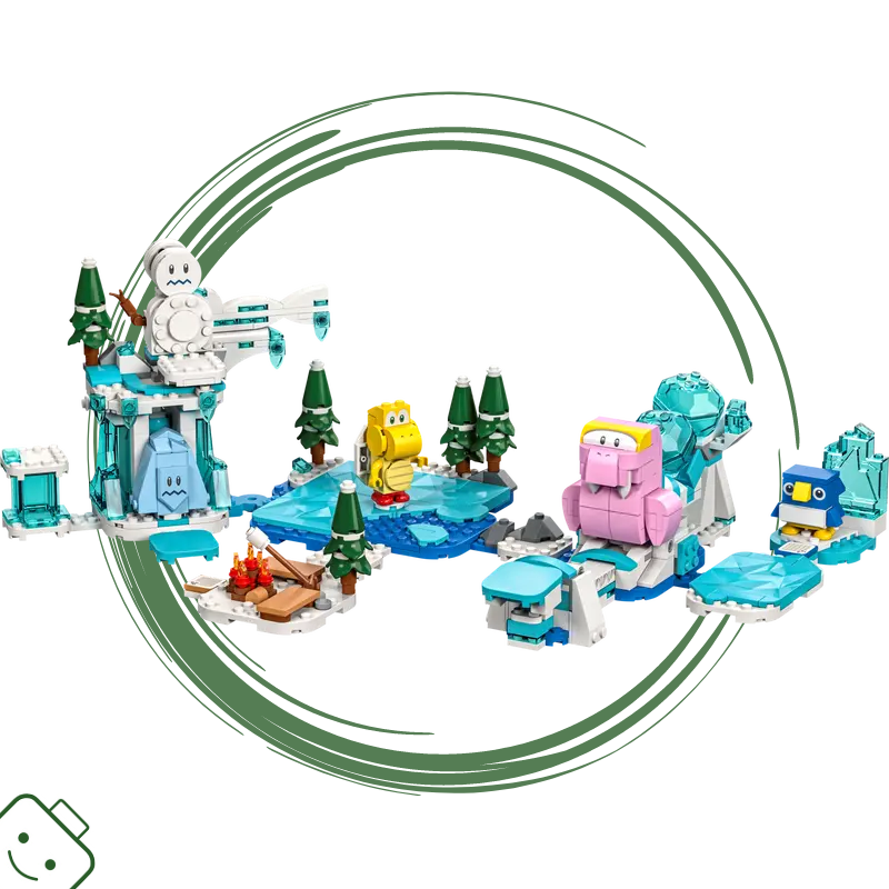 - Ledová dobrodružství – Pomozte LEGO® Mariovi, LEGO® Luigimu nebo LEGO® Peach™ (figurky nejsou součástí balení) shodit sněhulákovi hlavu a porazit Červeného Koopa Troopu, bruslit na „ledě“, ohřát se u „ohně“ a mnohem víc